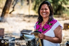 La Sara Sonia Garcia Perez (esquerra) és una apicultora de quarta generació i membre de Miel Mexicana, una cooperativa finançada per Oikocredit i enfocada en la producció de comerç just i mel orgànica per a l'exportació des de Mèxic. La Sara diu que els beneficis de ser part d'una cooperativa inclouen rebre un preu més alt per la seva mel del que ho faria ella sola. A la Sara li agradaria seguir treballant amb les abelles i Miel Mexicana.