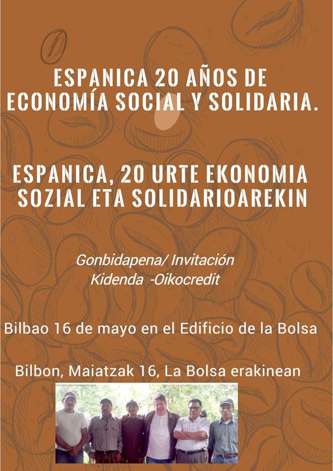 - Martes 16 - 18,30h (Edificio La Bolsa, Bilbao): junto a Kidenda organizamos una visita de la cooperativa de cafetaleras de Nicaragua del proyecto Espanica. Tendremos la oportunidad de conocer de primera mano el funcionamiento de esta cooperativa y la incidencia que tienen las inversiones éticas en su modelo productivo.