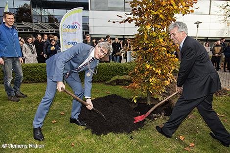 jueves, 26 de noviembre de 2015 Durante la semana pasada tuvieron lugar tres plantaciones de árboles, en Holanda, Kenya e India para conmemorar los 40 años de Oikocredit, en ceremonias dónde participaron empleados de Oikocredit de todo el mundo. La plantación en la oficina de Oikocredit Internacional en Amersfoort contó con la presencia del equipo de Oikocredit y sus familias. La ceremonia fue dirigida por el Director ejecutivo de Oikocredit Internacional, David Woods, la directora de programas y especialista medioambiental, Sonja Ooms, así como el alcalde de Amersfoort, Lucas Bolsius. Hubo más invitados como el director de Oikocredit Holanda, Hann Verheijen, y representantes del Consejo local de Amersfoort y miembros de la prensa.