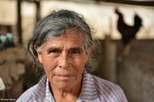 Unos baches más lejos, camino arriba en las colinas, nos espera Dimas Morales. Dimas es un clienta de ProEmpresa, que posee 700 gallinas, algunos gallos y varios cerdos.