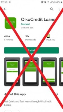 jueves, 05 de diciembre de 2019 Oikocredit desea alertar a sus socios, inversores y al público en general sobre la siguiente aplicación fraudulenta: OikoCredit Loans